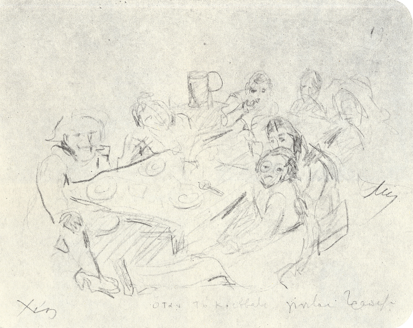 Wir setzen uns in die schmalen Schattenstreifen entlang der gestapelten Schienen. Die hungrigen Griechen (mehreren von ihnen ist es gelungen, mitzukommen, Gott weiß wie) stöbern unter den Schienen. Einer findet ein paar Brocken schimmliges Brot, ein anderer einige halb verfaulte Sardinen. Sie essen […] mit gierig arbeitenden Kiefern, wie riesige menschliche Insekten kauen sie auf den altbackenen Brotklumpen herum.