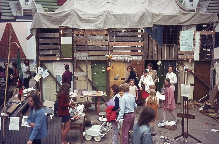 Scratch Cottage, so wie es erstmalig bei der Ausstellung Art Spectrum in London 1971 installiert wurde, war ursprünglich als Ort des Spiels konzipiert – isoliert vom Kontext der „High Art“.