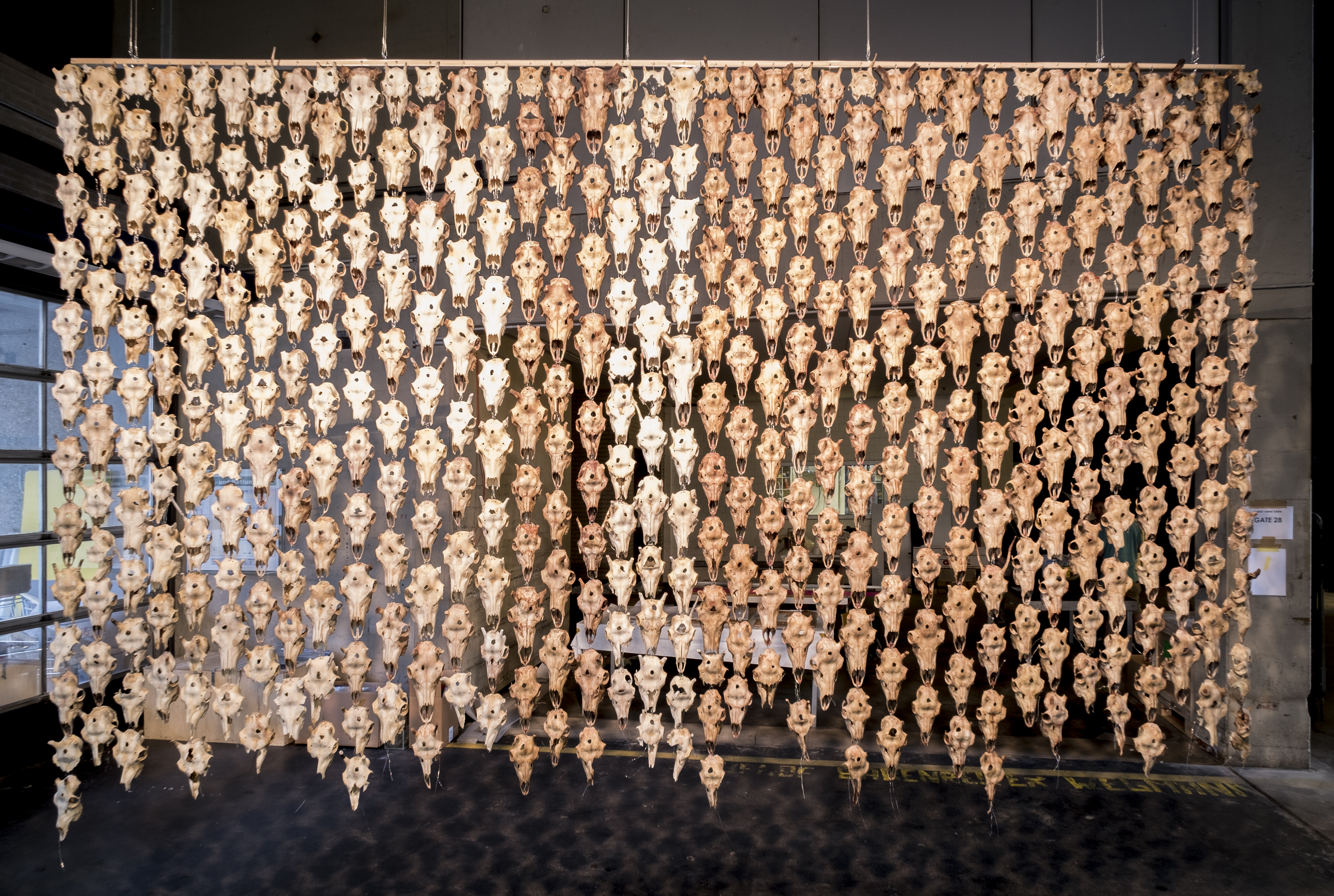 Máret Ánne Sara, Pile o’ Sápmi, 2017, verschiedene Materialien, Installationsansicht, Neue Neue Galerie (Neue Hauptpost), Kassel, documenta 14, Foto: Mathias Völzke