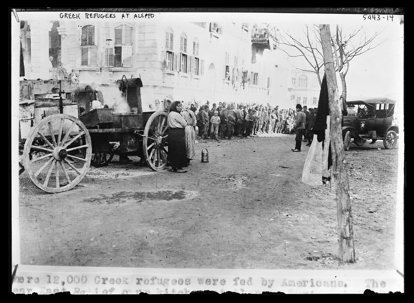 Griechische Flüchtlinge in Aleppo im Zuge des Bevölkerungsaustausch zwischen Griechenland und der Türkei, 1923, undatierte Schwarz-Weiß-Fotografie