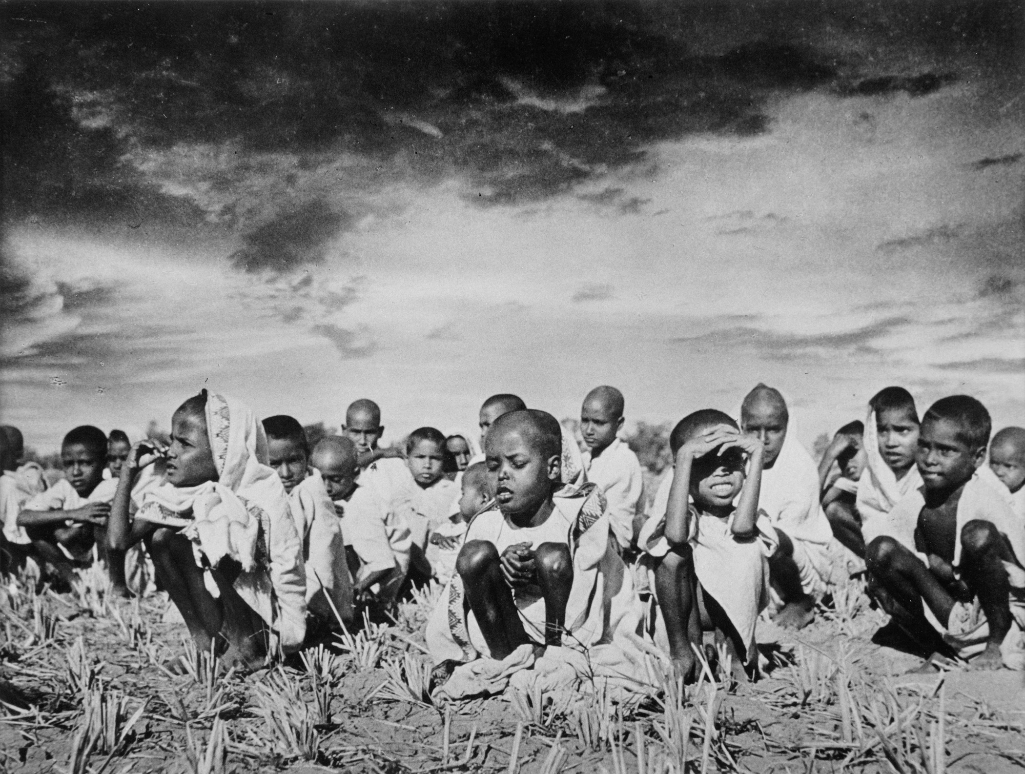 Sunil Janah, Waisen vor einem Hilfszentrum während der Hungersnot in Orissa, 1944
