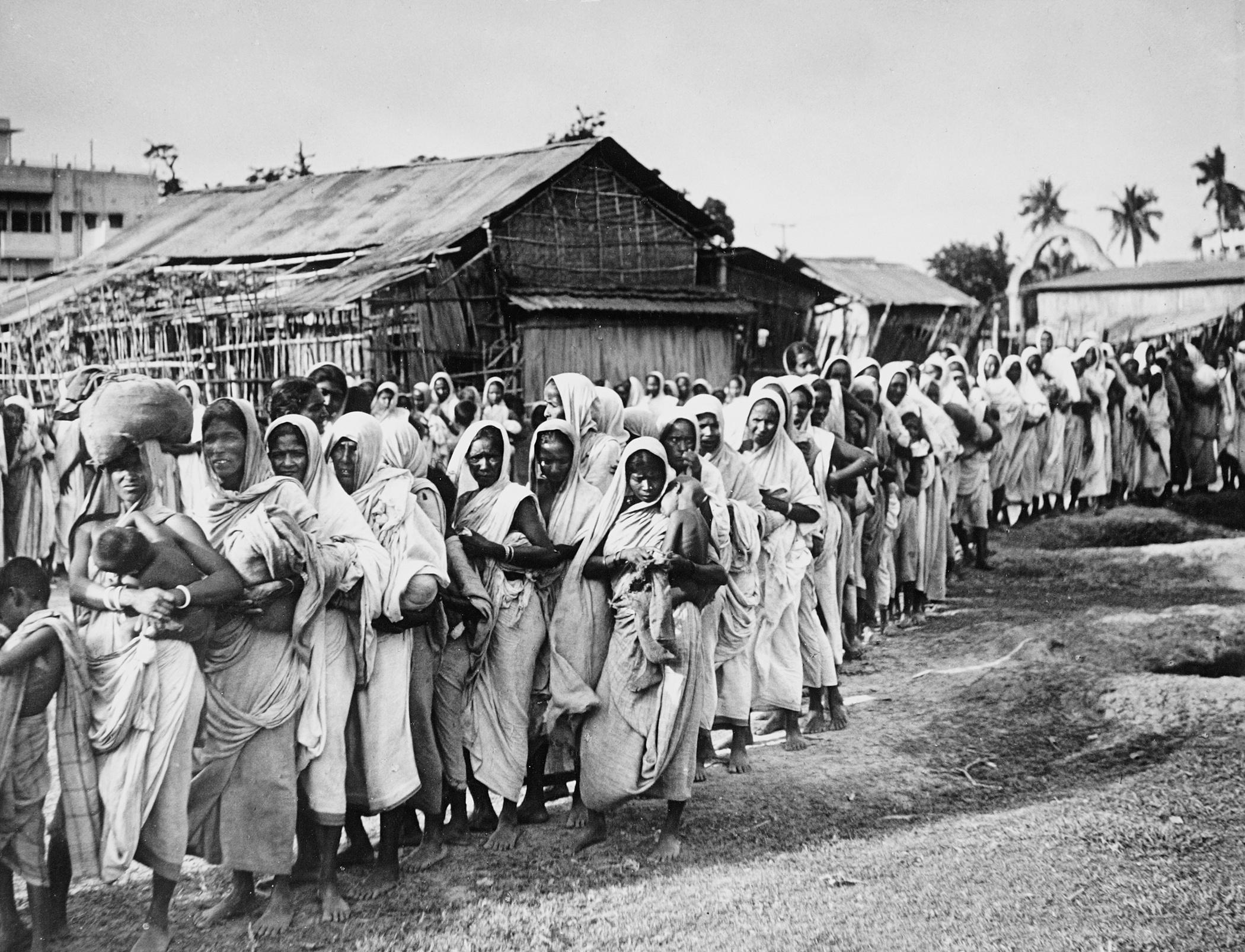 Diese Atmosphäre des Schocks entlarvt das wahre Wesen der Hungersnot als eine Realität von Extremen, sodass ihre gespenstische Erinnerung nur als verzerrte Figuration – als eine schaurige Welt des Chaos – ausgedrückt werden kann. Da diese systemischen Brüche nun offen zutage lagen, litten Tausende Familien an Arbeitslosigkeit und Hunger und blieben ihrem Schicksal überlassen, während die Hungersnot in Bengalen nur noch heftiger wütete. Dennoch versuchte eine wachsende Bevölkerung aus Flüchtlingen und Militärangehörigen beharrlich, sich auf dem betroffenen Gebiet in Sicherheit zu bringen.