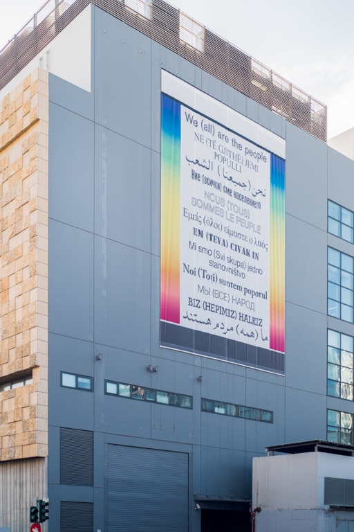 Hans Haacke, Wir (alle) sind das Volk—We (all) are the people, 2003/2017, banner, EMST—National Museum of Contemporary Art, Athens, documenta 14, © VG Bild-Kunst, Bonn, photo: Mathias Völzke