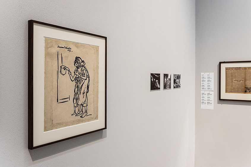 Zainul Abedin, from the series “Famine Sketches,” installation view, Neue Galerie, Kassel, documenta 14, photo: Milan Soremski