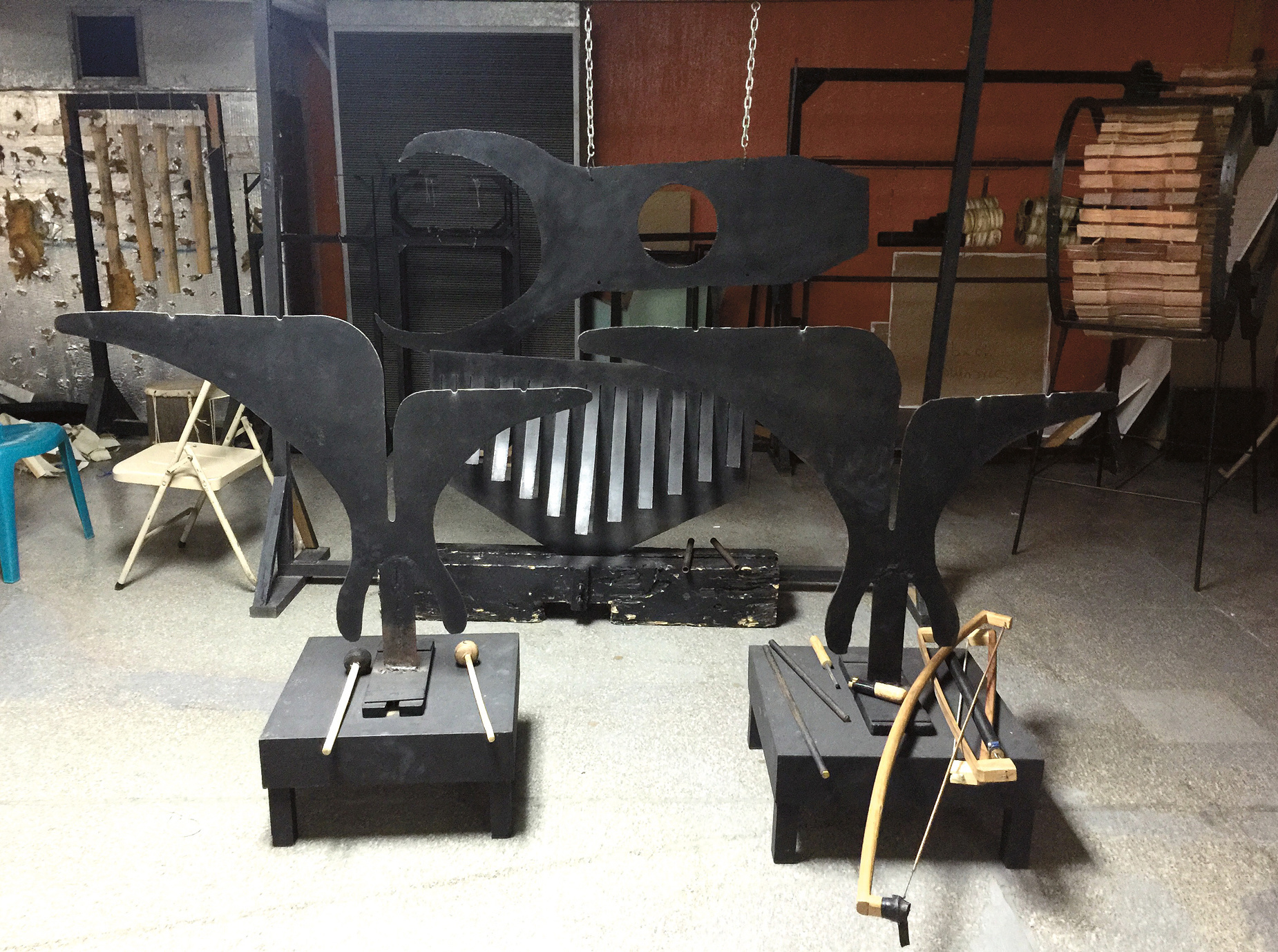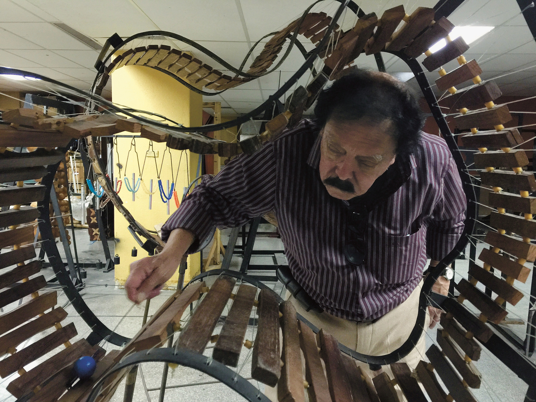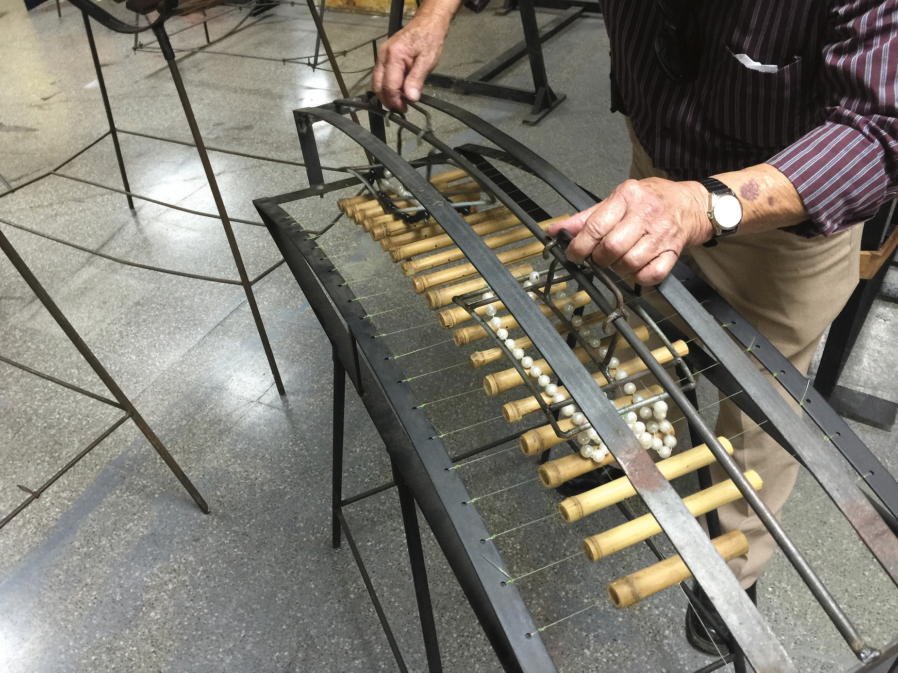 To answer the question, I believe the sound utensils were a form of self-determination, though chance played a role. For instance, in the 1971 Humanofonía, when I realized that the marimba was a constant in our sound landscape, an idealization of the marimba began. It was then that the sound utensils began to take shape. So there were certain cyclical automatisms involved. [Visual artist] Carlos Amorales gave a very good explanation. When he noticed that the bars of the marimba sounded as percussion does, bouncing off each other in a cyclical manner, he thought that was like doing away with electronic music sequencers, that they had been substituted with an artisanal method.