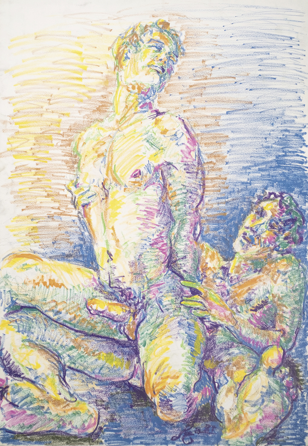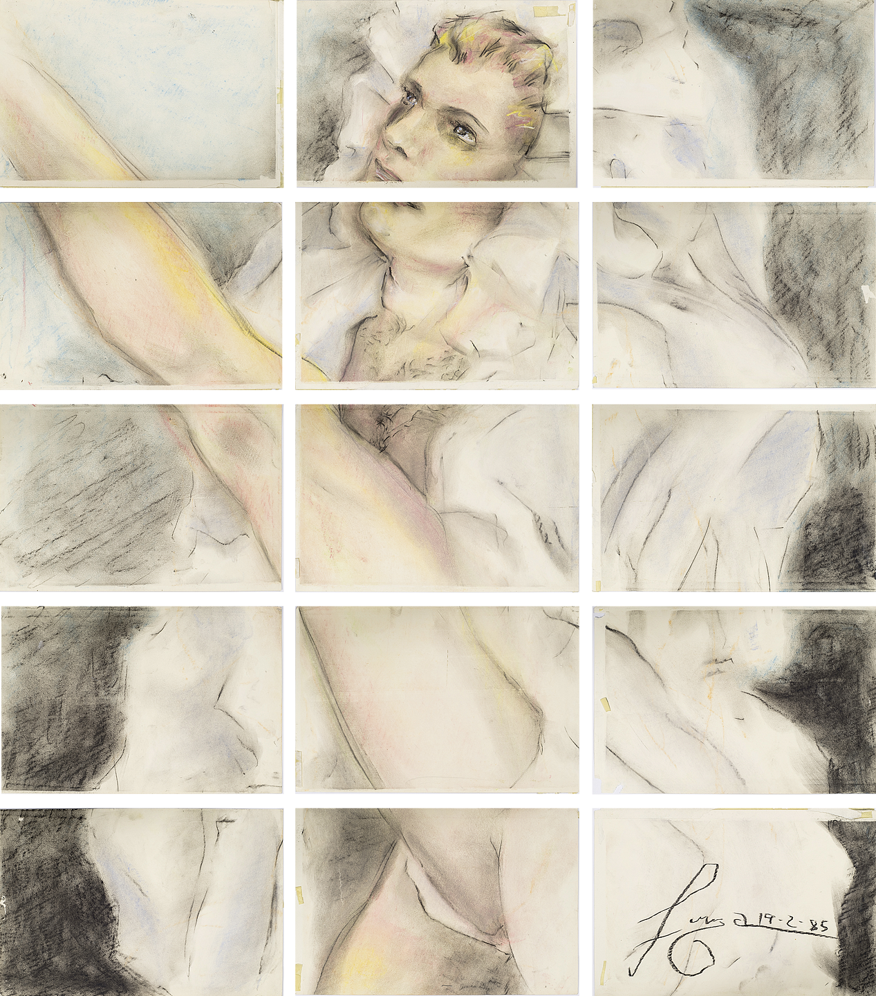 Lorenza Böttner, άτιτλο (1985), παστέλ σε χαρτί, δεκαπέντε φύλλα ενωμένα με κολλητική ταινία, φύλλα: 23,5 × 35,5 εκ. το καθένα, περίπου 114 × 104 εκ. συνολικά