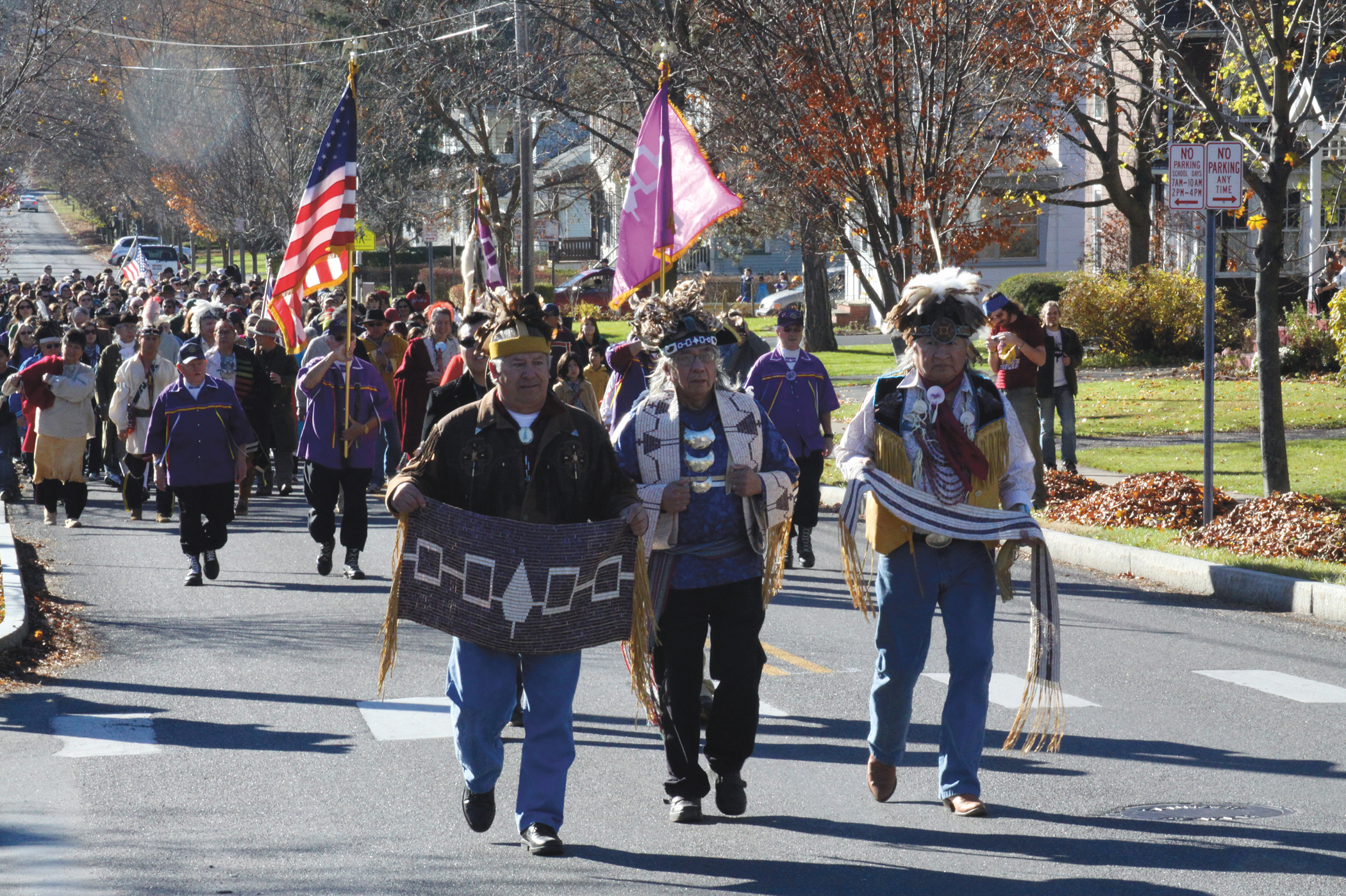 JR Όταν οι ζώνες wampum δημοσιοποιούνται στο Kayanerenhtserakó:wa, η γνώση που περιέχουν ενεργοποιείται. Κάτι παρόμοιο συμβαίνει όταν οι ζώνες χρησιμοποιούνται σε σημαντικές αναπαραστάσεις συνθηκών, για παράδειγμα στη γιορτή για τη διέλευση των συνόρων προς τιμήν της Συνθήκης Jay του 1794, που ξεκίνησε από τις προσπάθειες του Συνδέσμου για την Προστασία των Δικαιωμάτων των Ινδιάνων της Αμερικής [Indian Defense League of America], την οποία ίδρυσε ο παππούς μου, αρχηγός Clinton Rickard, το 1926. Οι λαοί Haudenosaunee παρελαύνουμε στις πατρίδες μας, στα σύνορα μεταξύ Ηνωμένων Πολιτειών και Καναδά, για να διεκδικήσουμε το δικαίωμά μας για απρόσκοπτη πρόσβαση στα προγονικά μας εδάφη. Ένα άλλο παράδειγμα: Στις 11 Νοεμβρίου κάθε χρόνο ο G. Peter Jemison, καλλιτέχνης και φύλακας της πίστης, καταγωγής Seneca, είναι υπεύθυνος για την αναπαράσταση της Συνθήκης Canandaigua, του 1794, η οποία σηματοδοτεί την ημέρα και την τοποθεσία όπου οι Ηνωμένες Πολιτείες αναγνώρισαν νομοθετικά την εθνική κυριαρχία των Haudenosaunee. Η ζώνη που επιβεβαιώνει τη σχέση αυτή ονομάζεται ζώνη του Τζορτζ Ουάσινγκτον και είναι μια ζώνη διαθήκης που απεικονίζει τις 13 αρχικές Ηνωμένες Πολιτείες. Κατά την παρέλαση για τη Συνθήκη Canandaigua οι αρχηγοί που κατέχουν τους ίδιους τίτλους με τους άντρες που υπέγραψαν τη συνθήκη με τις ΗΠΑ το 1794 φέρουν τη ζώνη Τζορτζ Ουάσινγκτον, τη ζώνη Χιαγουάθα και τις δύο ζώνες Row. Επειδή οι ζώνες αποτελούν ζωντανό τεκμήριο αυτής της σχέσης, οι αρχηγοί δεν αναπαριστάνουν το παρελθόν, αλλά θεσπίζουν το παρόν μας.
