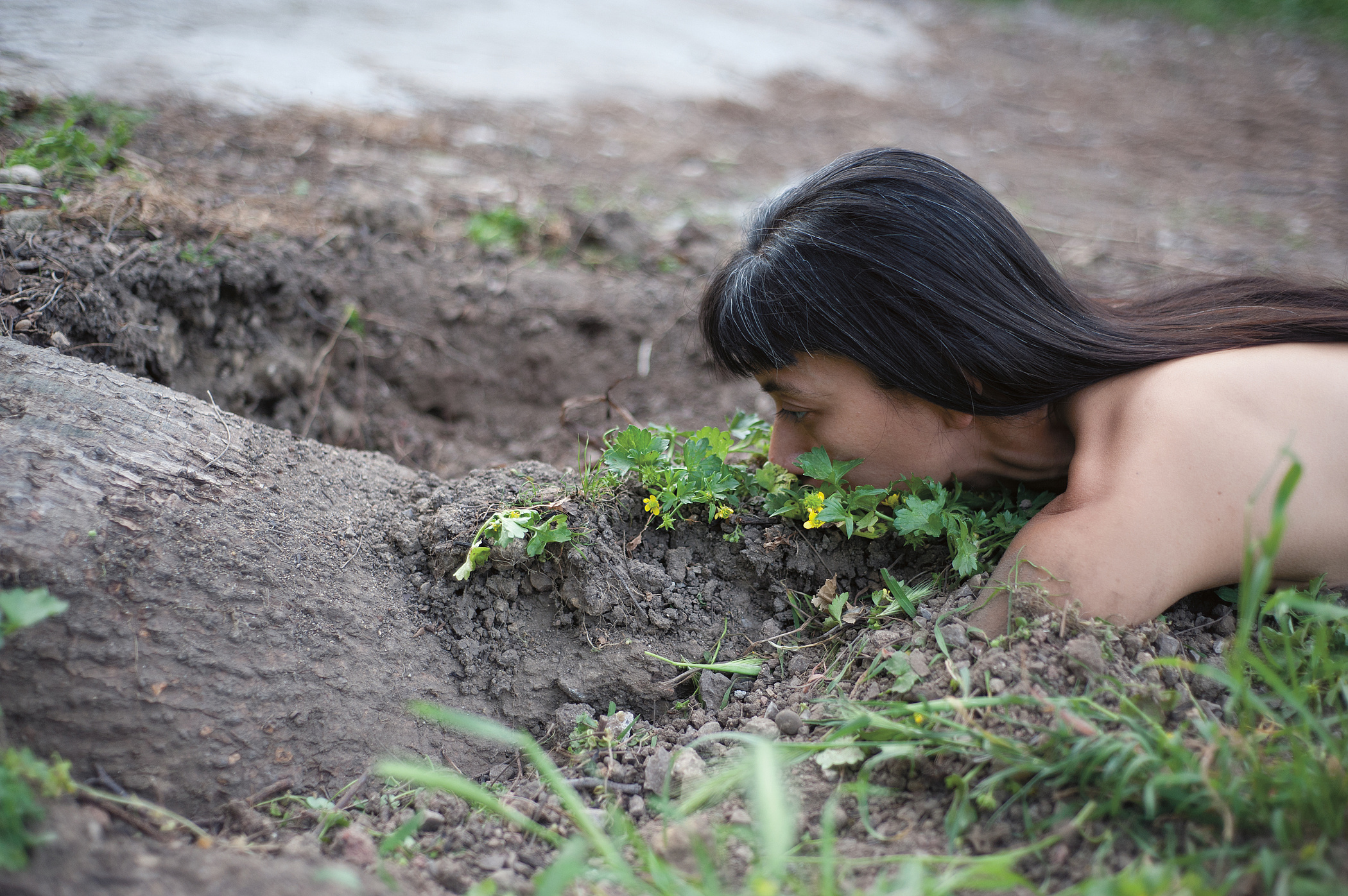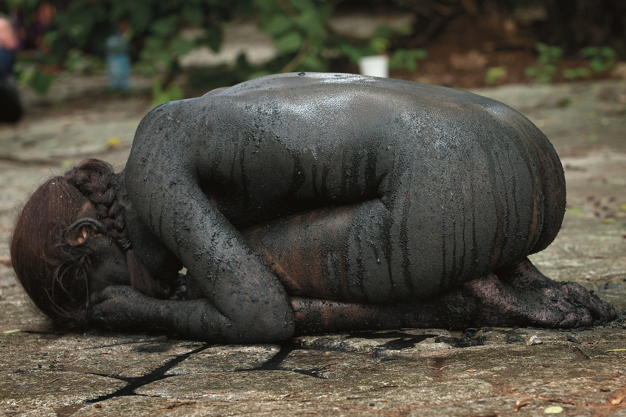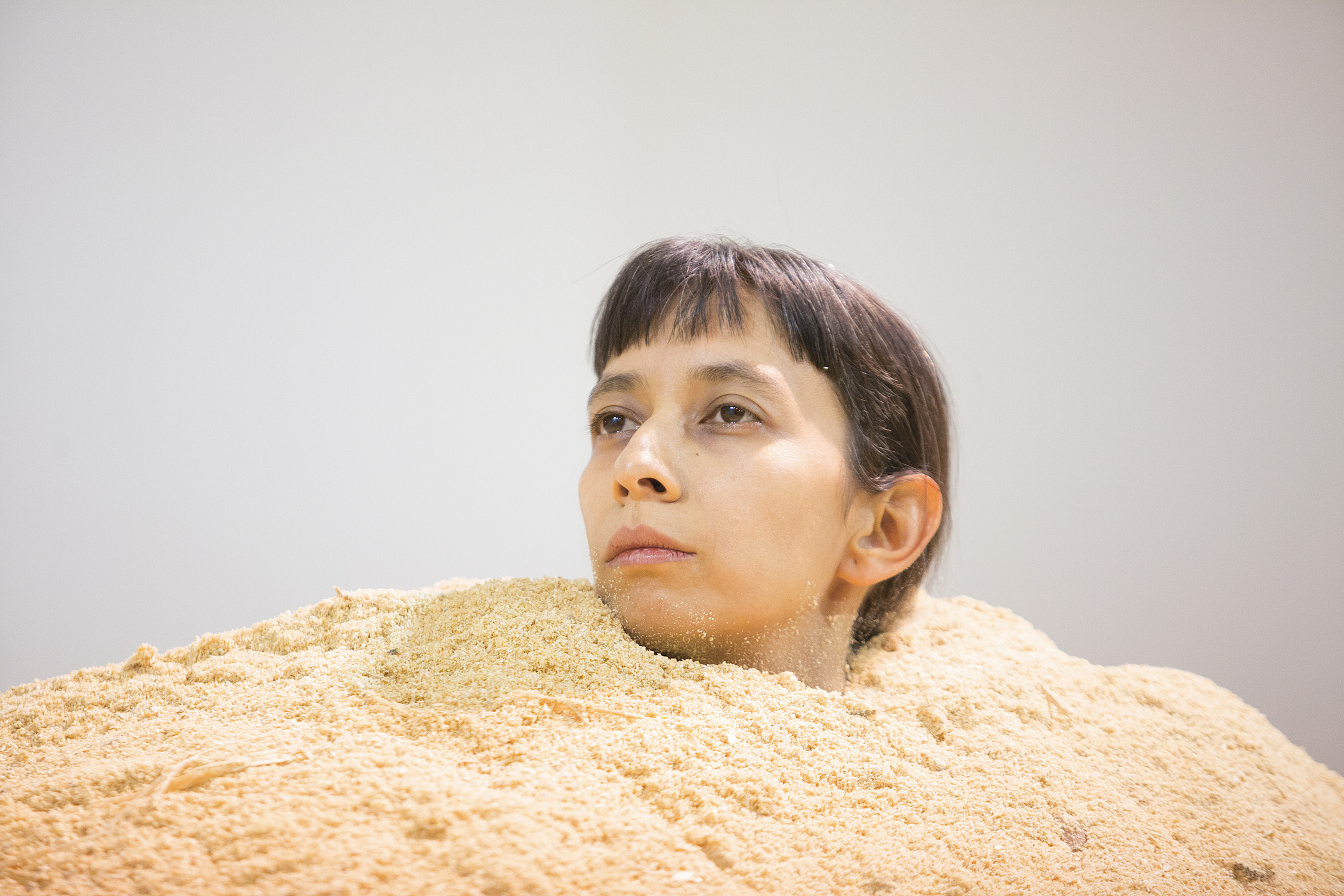 Regina José Galindo, Tierra (2013), performance, Les Moulins de Paillard, Paris