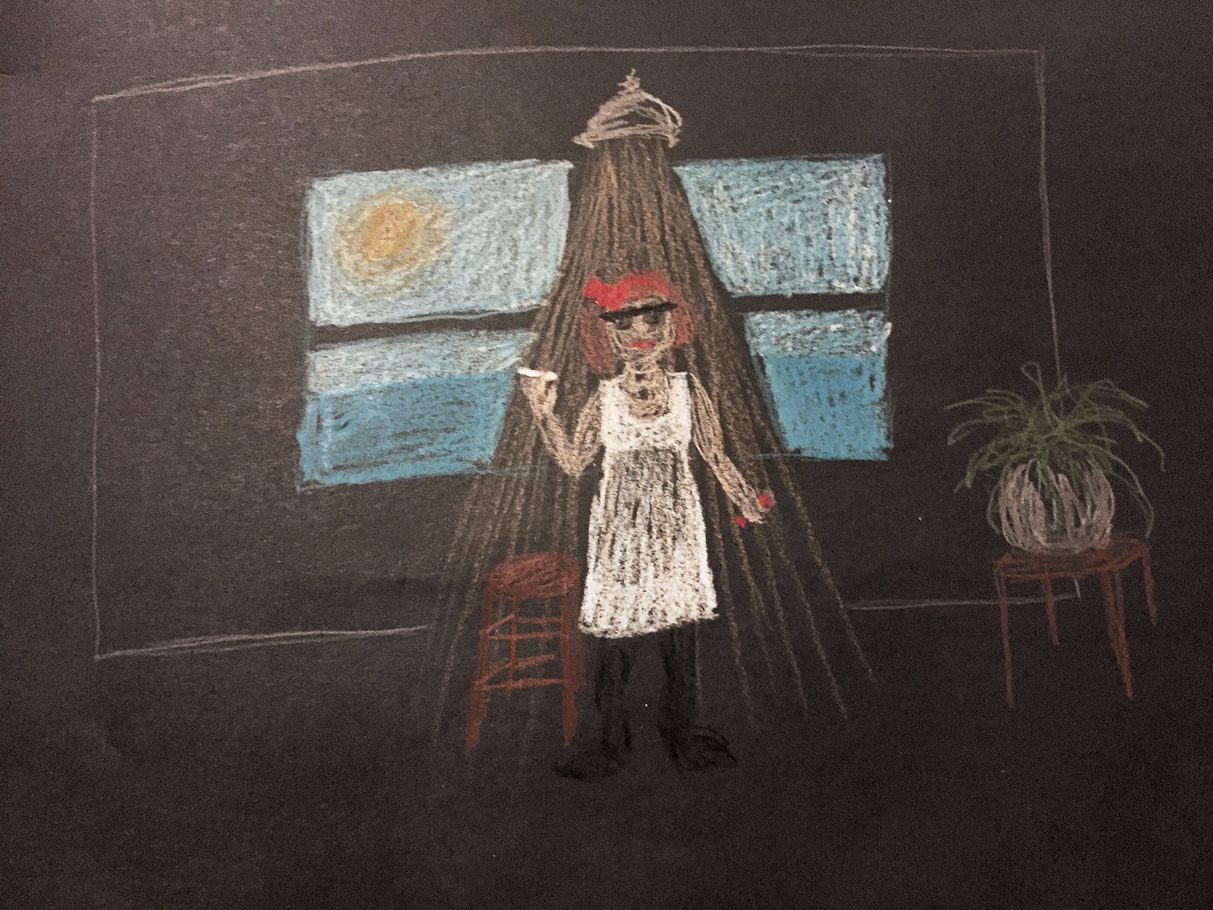 HANSEL She said that the Witch (indicating to the stepmother in the other room) doesn’t really care about us … Aunt Tanya thinks that she (indicating to where Mother is sitting) is trying to cook Papa into a broth of her own making … rich, successful.
