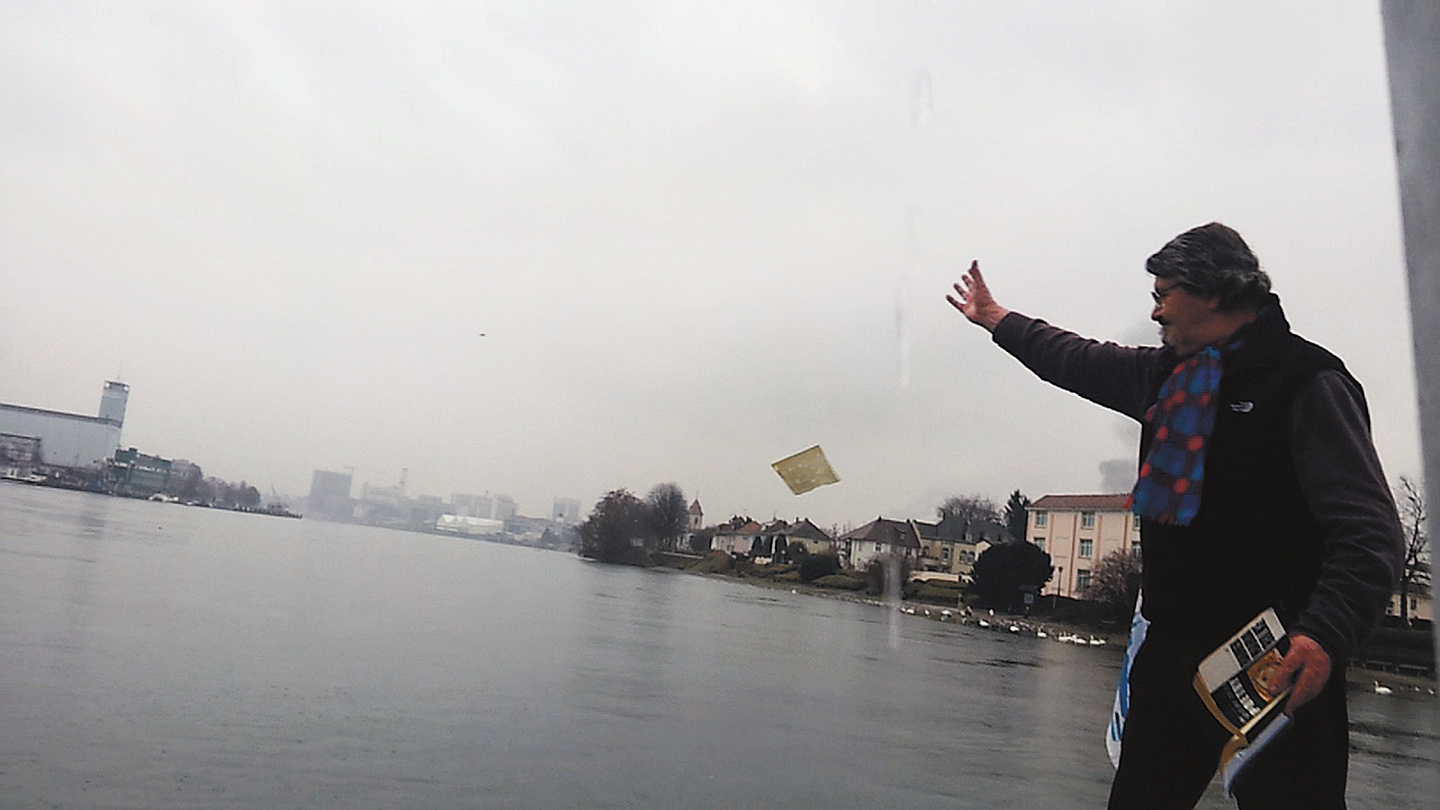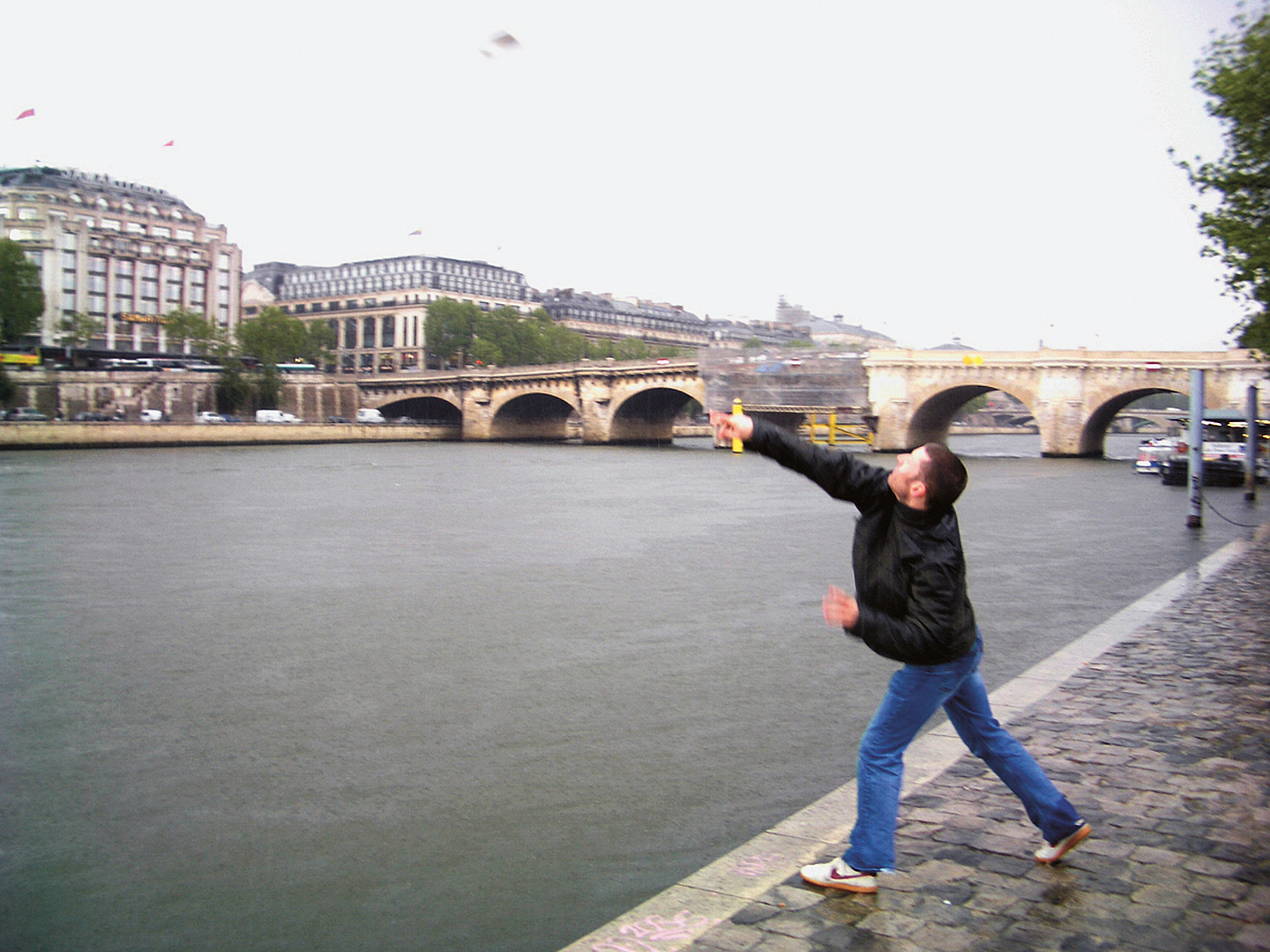 Το Τι είναι φιλοσοφία; των Gilles Deleuze και Félix Guattari πετάγεται στον Σηκουάνα, Παρίσι, 4 Μαΐου 2004